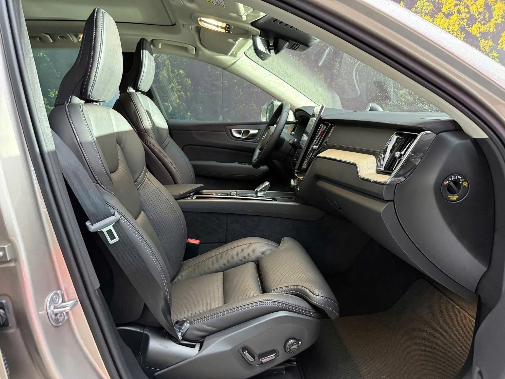Volvo XC60 2026 với nội thất xe gỗ ốp khoang lái Natural Drift Wood, da bọc ghế đều bằng những gam màu trầm, cao cấp nhưng không quá hào nhoáng.